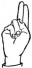 На ћирилици написано ВАЛЕНТИНА БАДРИЋ састоји се из 15 слова [?]. Исписано ћириличном једноручном азбуком за глувонеме: